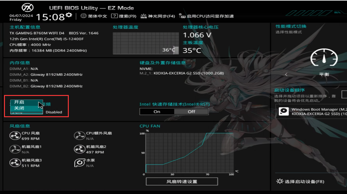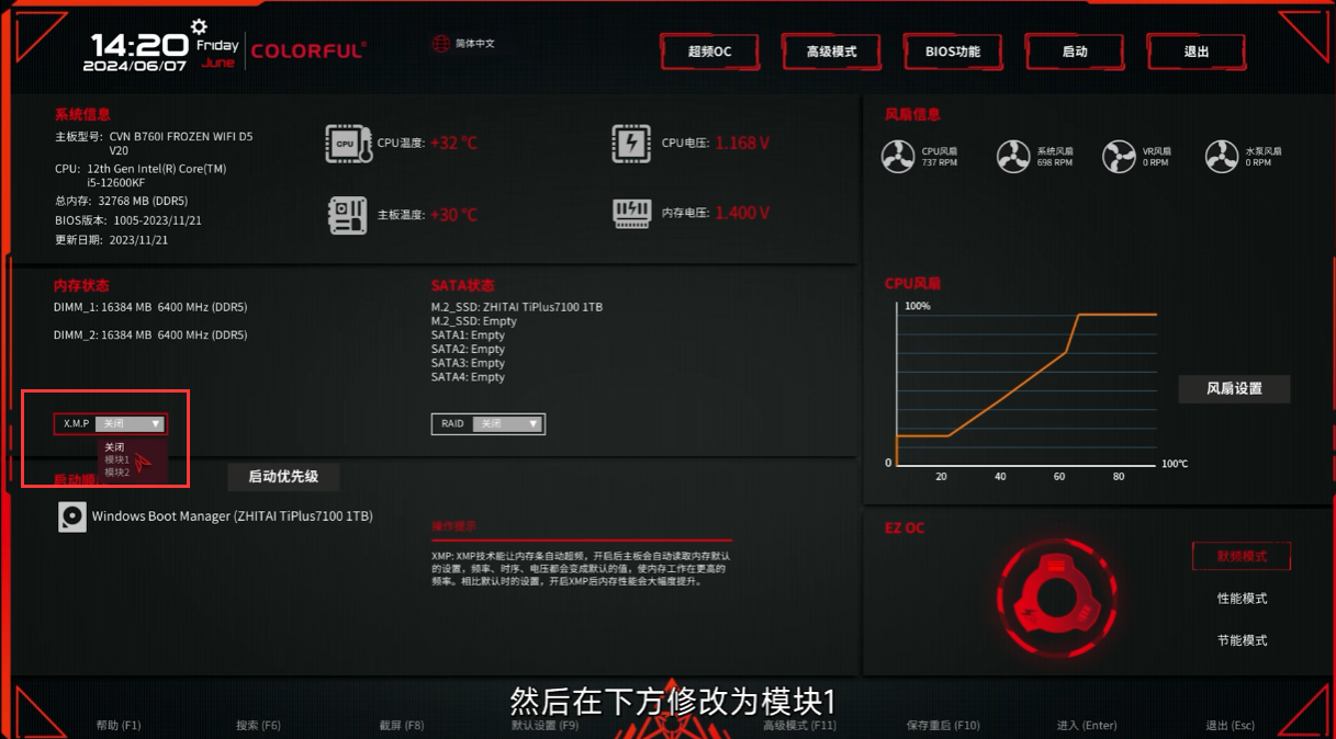 七彩虹主板XMP,在左边可以看到XMP的选项,将XMP设置“模块1”或者“打开”。