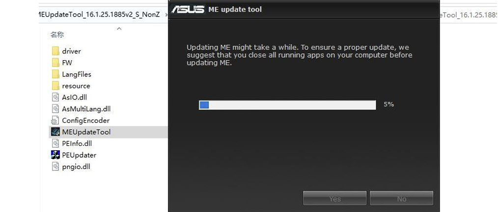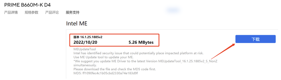 新版本的ME固件是16.1.25.1885V2版本的。 https://dlsvr04.asus.com.cn/pub/ASUS/mb/03CHIPSET/MEUpdateTool_16.1.25.1885v2_S_NonZ.zip(如有更新的,请下载最新的版本安装)