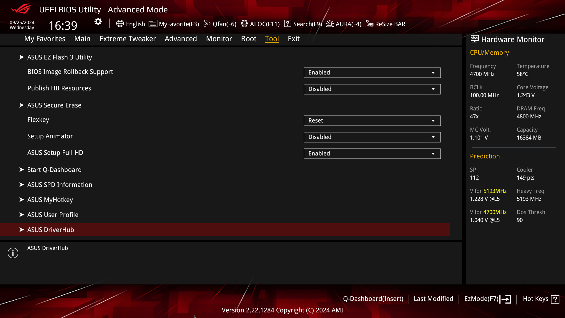 2.进入BIOS后选择Advanced Mode-> Tool ->选择 ASUS DriverHub