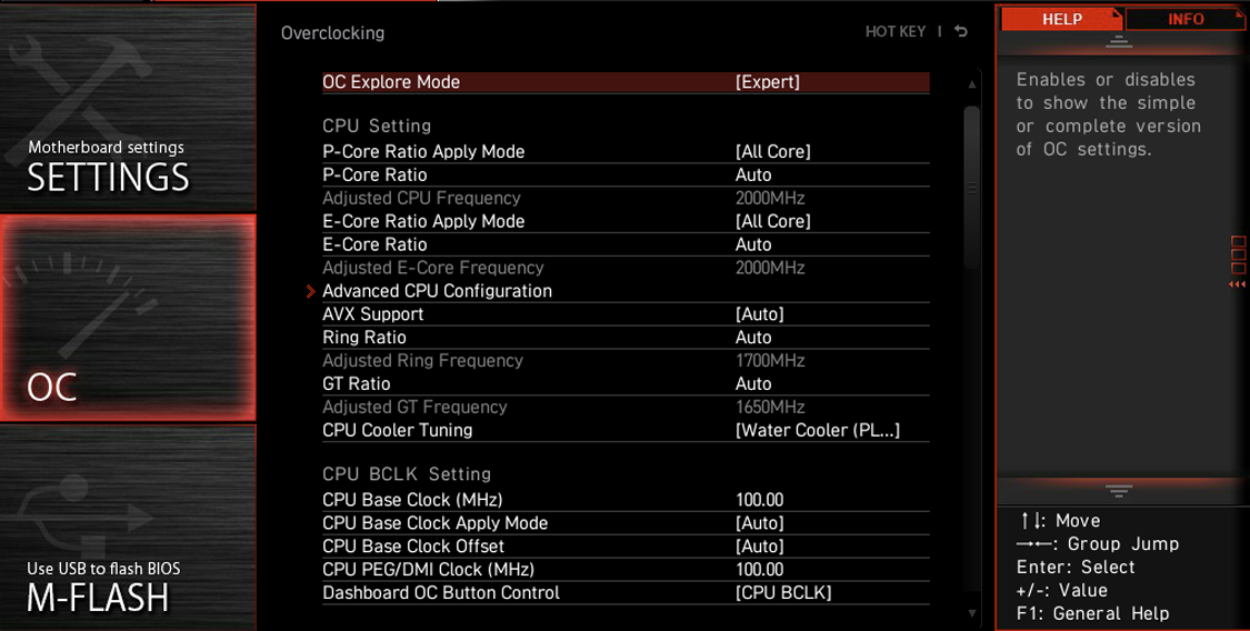 2、按键盘F7键,进入高级模式,然后选择左边的 “OC” 选项