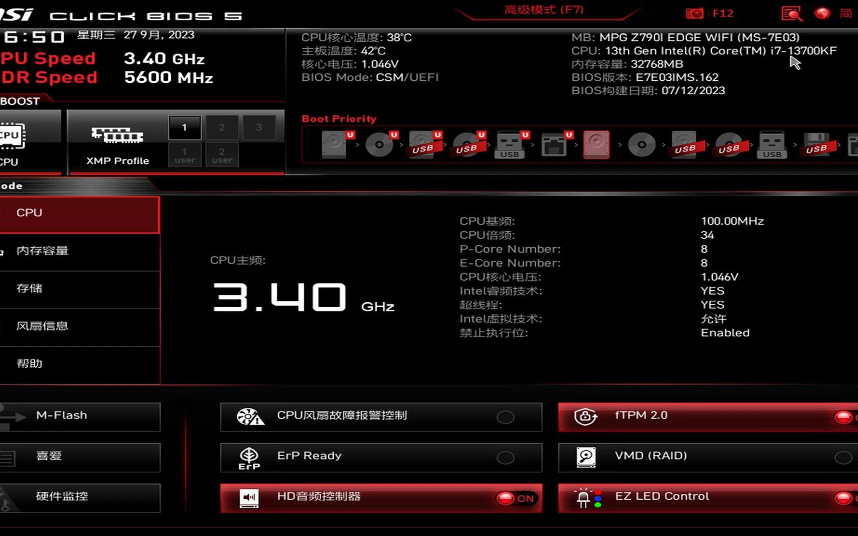 1、按开机后连续不停的按delete键进入BIOS设置,按F7进入高级设置
