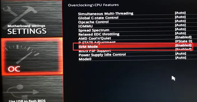 3、点选“SVM Mode”选项并设置为“Enabled”