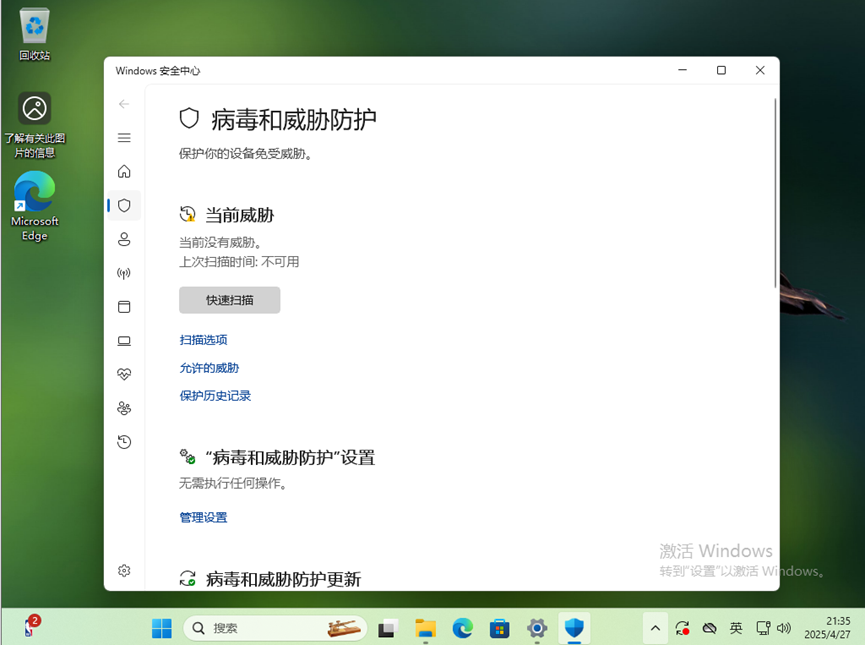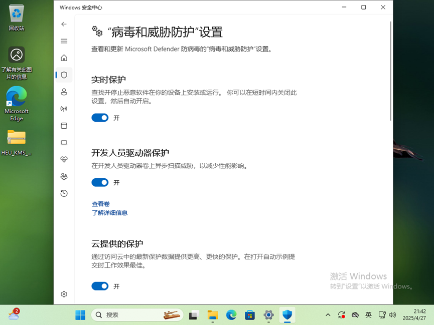 将里面的“病毒和威胁防护”设置都关掉,不开启。