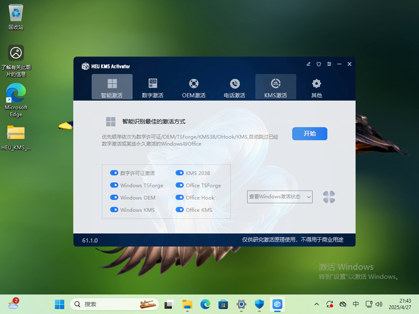 当进度条到100%的时候,而且跳出来,许可证状态:数字许可证激活成功时,这时你的系统就激活成功了。