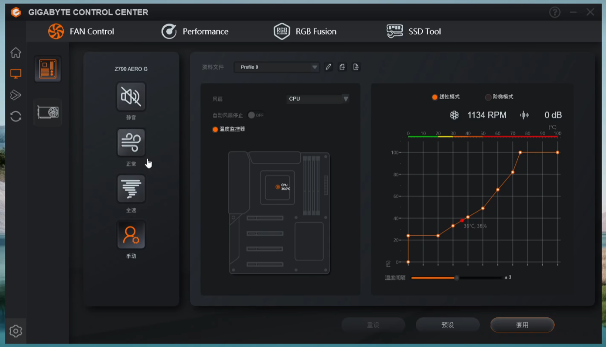 支持调节主板灯光、风扇速度、安装驱动、更新BIOS、硬件配置检测等等