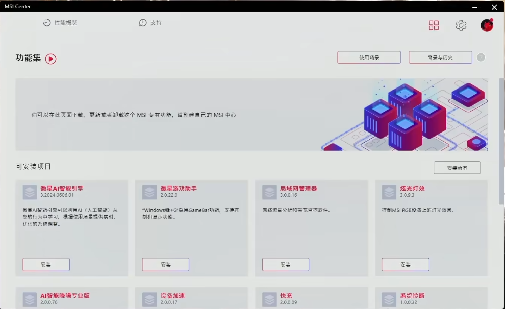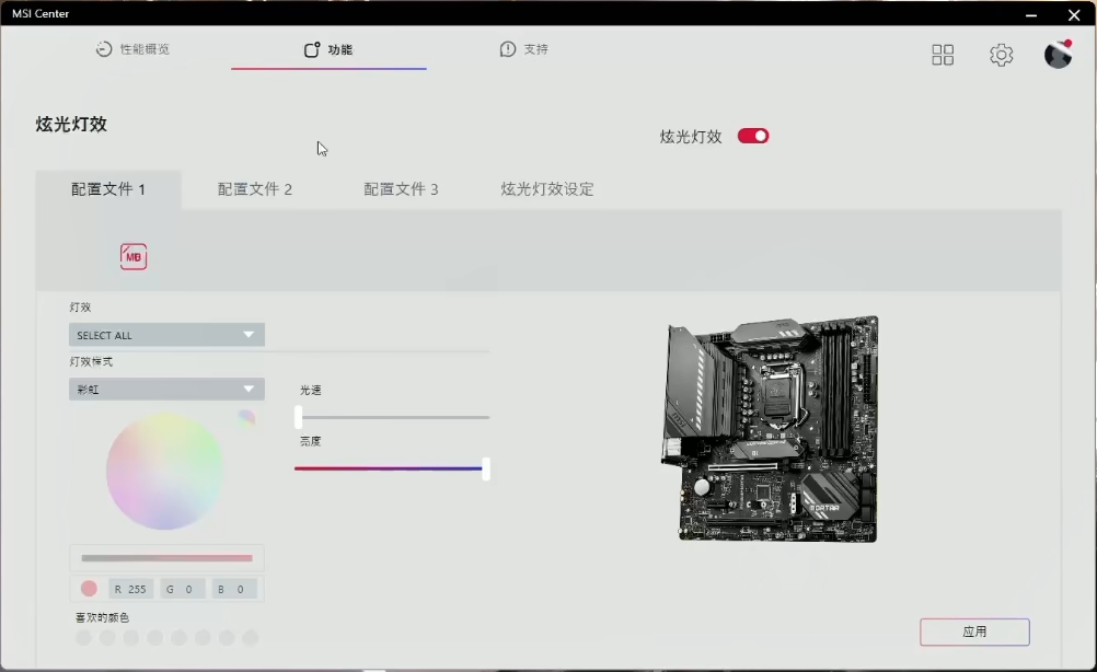 支持调节主板灯光、风扇速度、安装驱动、硬件配置检测等等