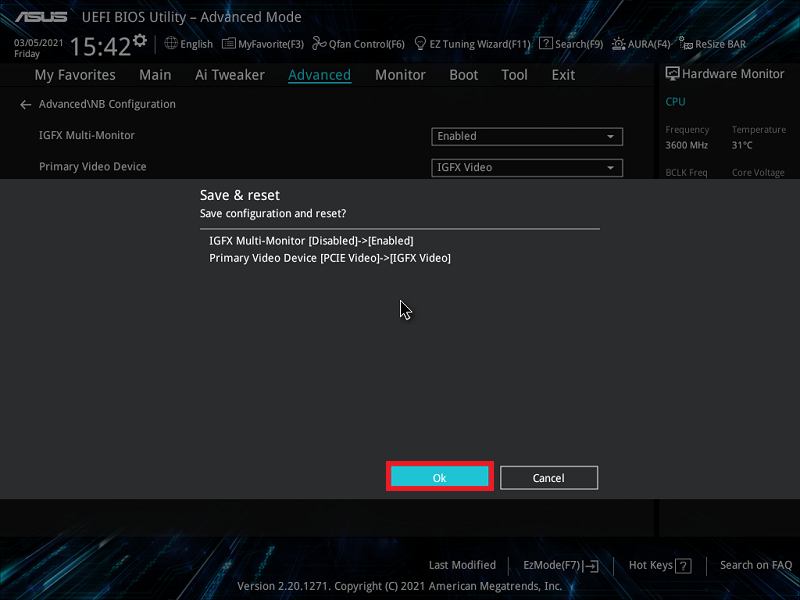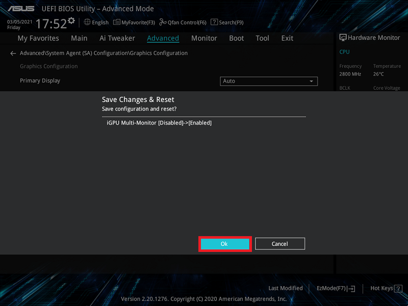 5. 点选[iGPU Multi-Monitor]选项并设置为[Enabled]开启,想要关闭则设置为[Disabled]
