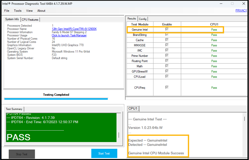 如果您有英特尔®处理器安装并在系统中运行,则可以使用 IPDT(英特尔®处理器诊断工具)检查英特尔处理器是否正版,以及产品名称是否匹配。