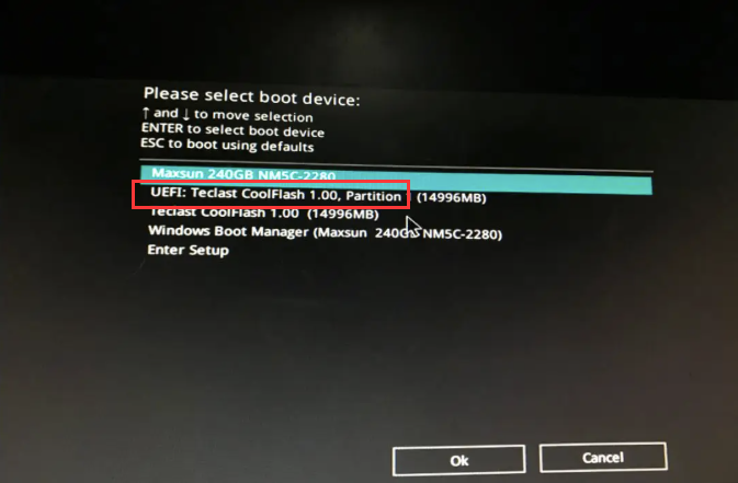 1. 制作好U盘之后,把U盘接上需要安装系统的机器 ,电脑开机按快捷键选U盘启动,快捷键参考:各种主板快捷启动键查询,这里选择UEFI开头的U盘选项