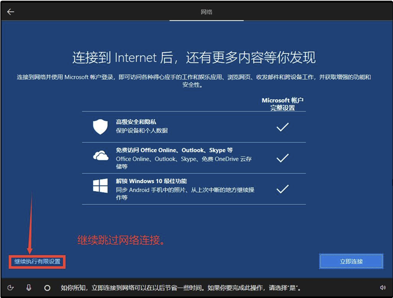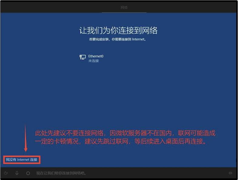 15.这里点击跳过联网,选择"我没有 Internet 连接"