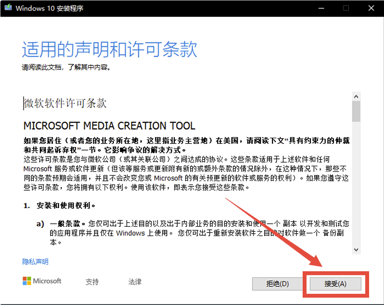 2.选择⽴即下载⼯具,点击保存之后,找到下载的软件双击运⾏。如果您 同意许可条款,请选择接受。