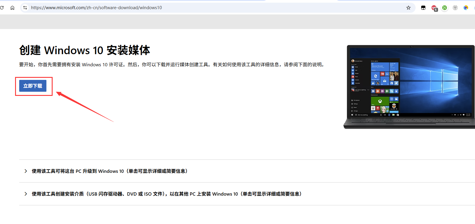 1.打开微软下载Win10的⽹址: https://www.microsoft.com/zh-cn/software-download/windows10