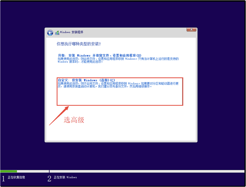 7.选择”自定义:仅安装Windows“,注意:删除分区会导致所有数据删除,如果有重要数据需要备份后再操作