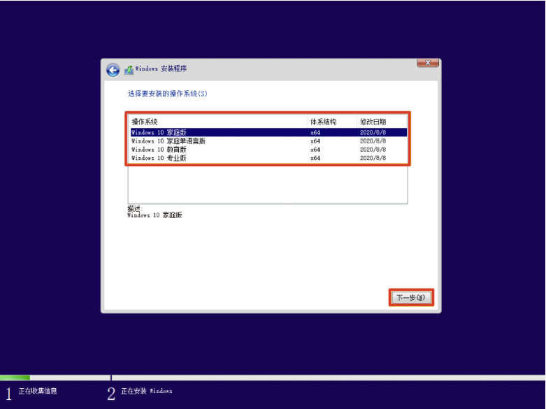 5.这里根据自己习惯选择,如自己不确定安装什么版本,可以选专业版,然后点击下一步