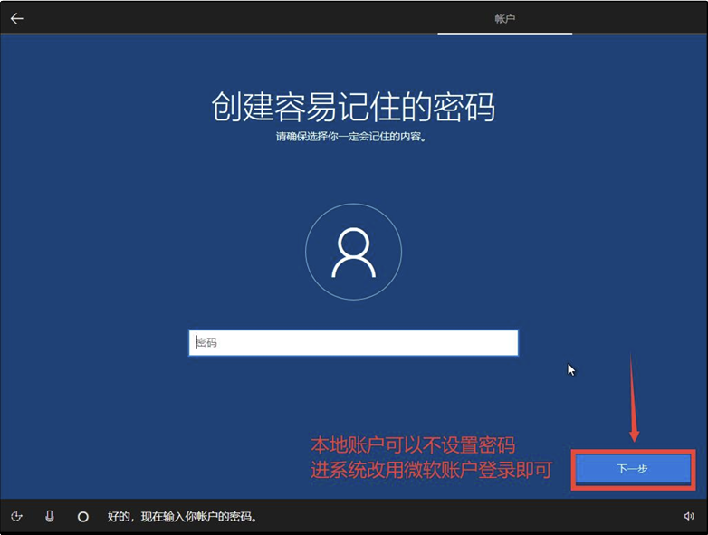 17.账户可以自己随便输入一个名字,如不需要密码,则密码这里直接点击下一步