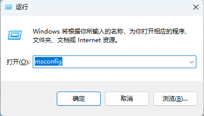 1、按键盘的 Windows 键 + R,在打开框中,输入msconfig,然后选择 确定