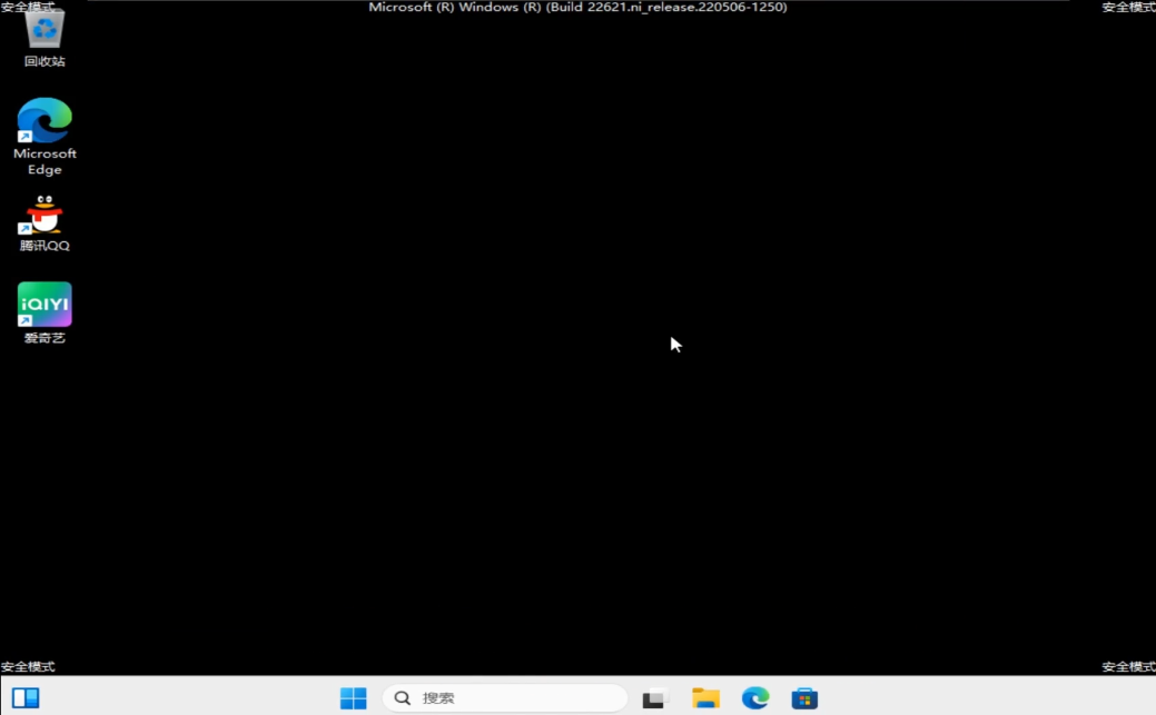 4、进入安全模式后,屏幕四个角都会有“安全模式“的字样,这样就代表已进入安全模式