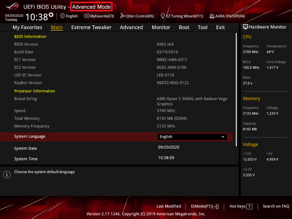 2. 按键盘F7键,进入Advance Mode,如下图所示: