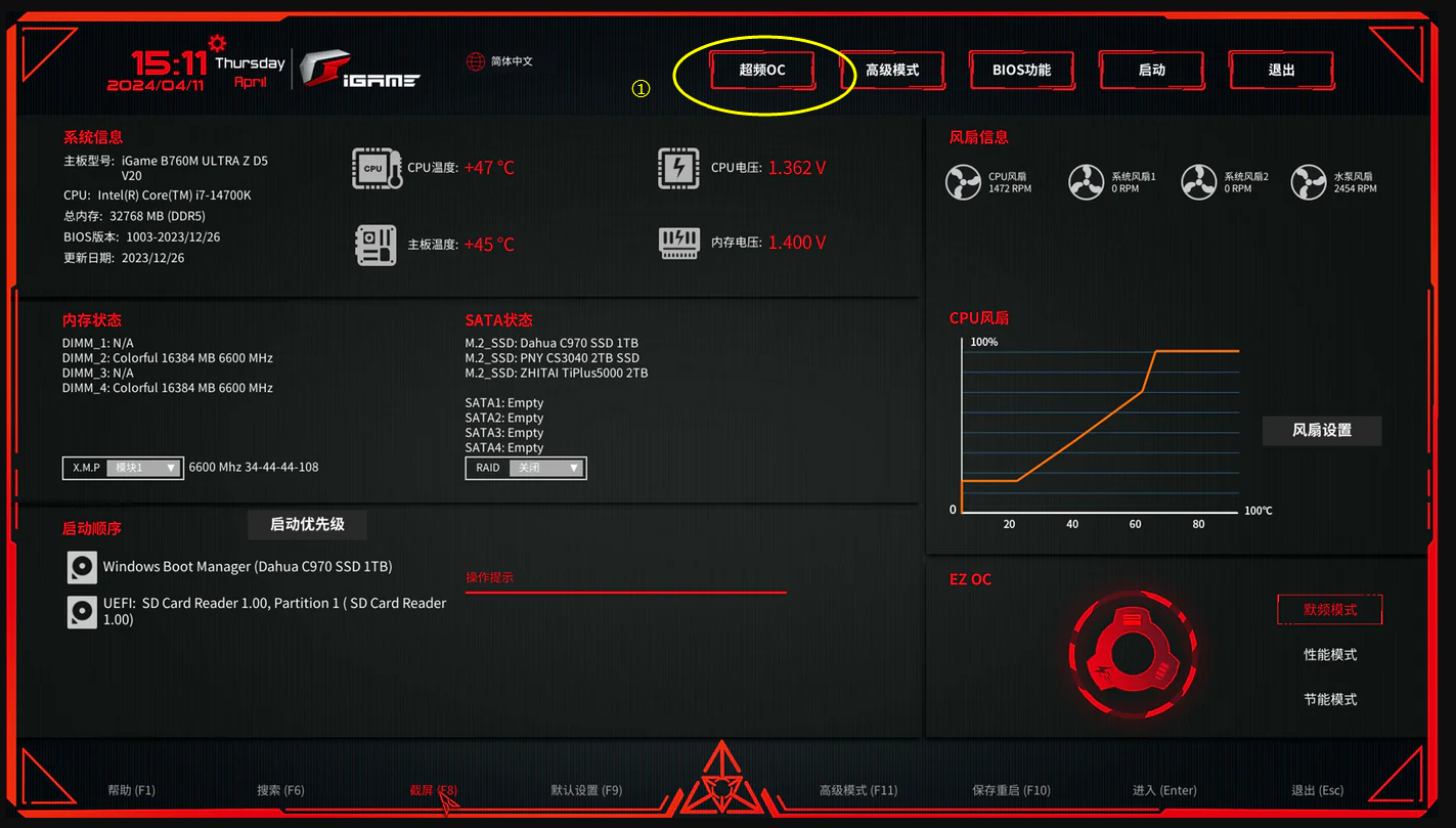 七彩虹主板开启睿频模式