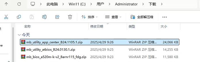 下载完成后先安装mb_utility_app_center文件,再安装mb_utility_atbios文件,最后将mb_bios文件解压到桌面