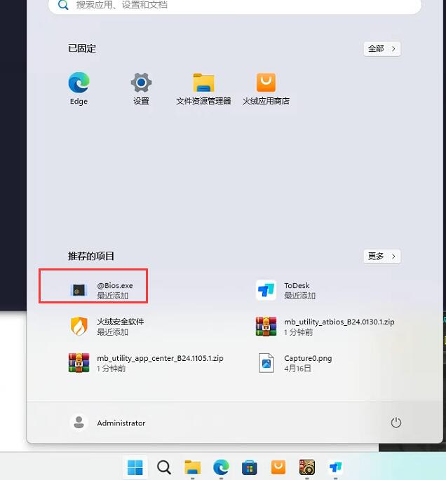 点击电脑开始菜单,可以看到@BIOS的程序并打开程序