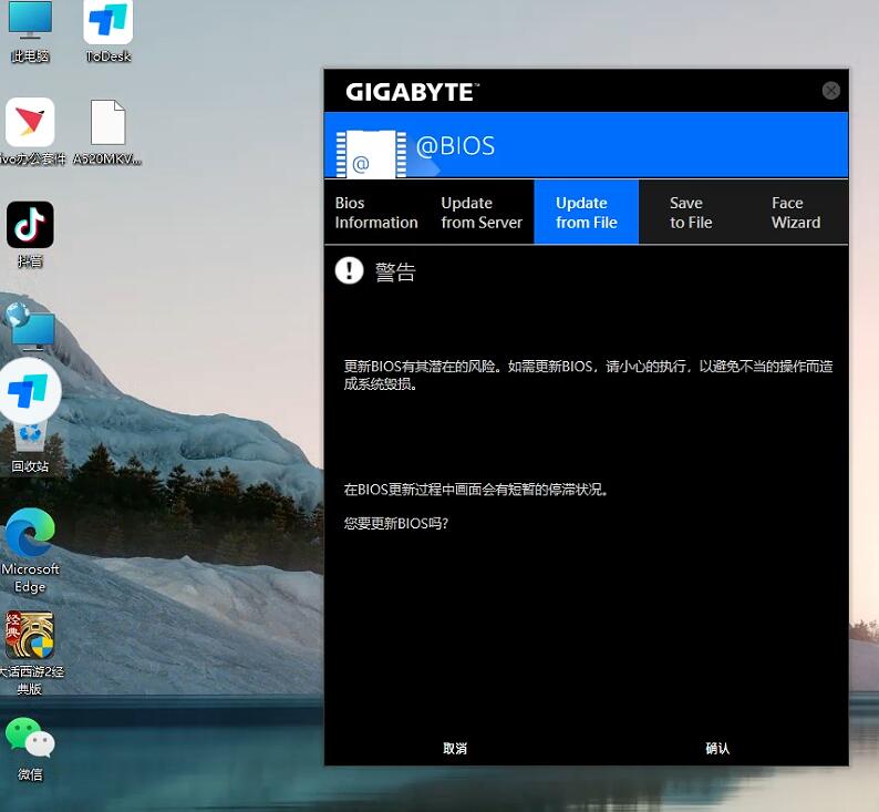 点击确认即可更新BIOS(这里提示更新BIOS会有潜在的风险,更新过程中不要强行关机或断电)