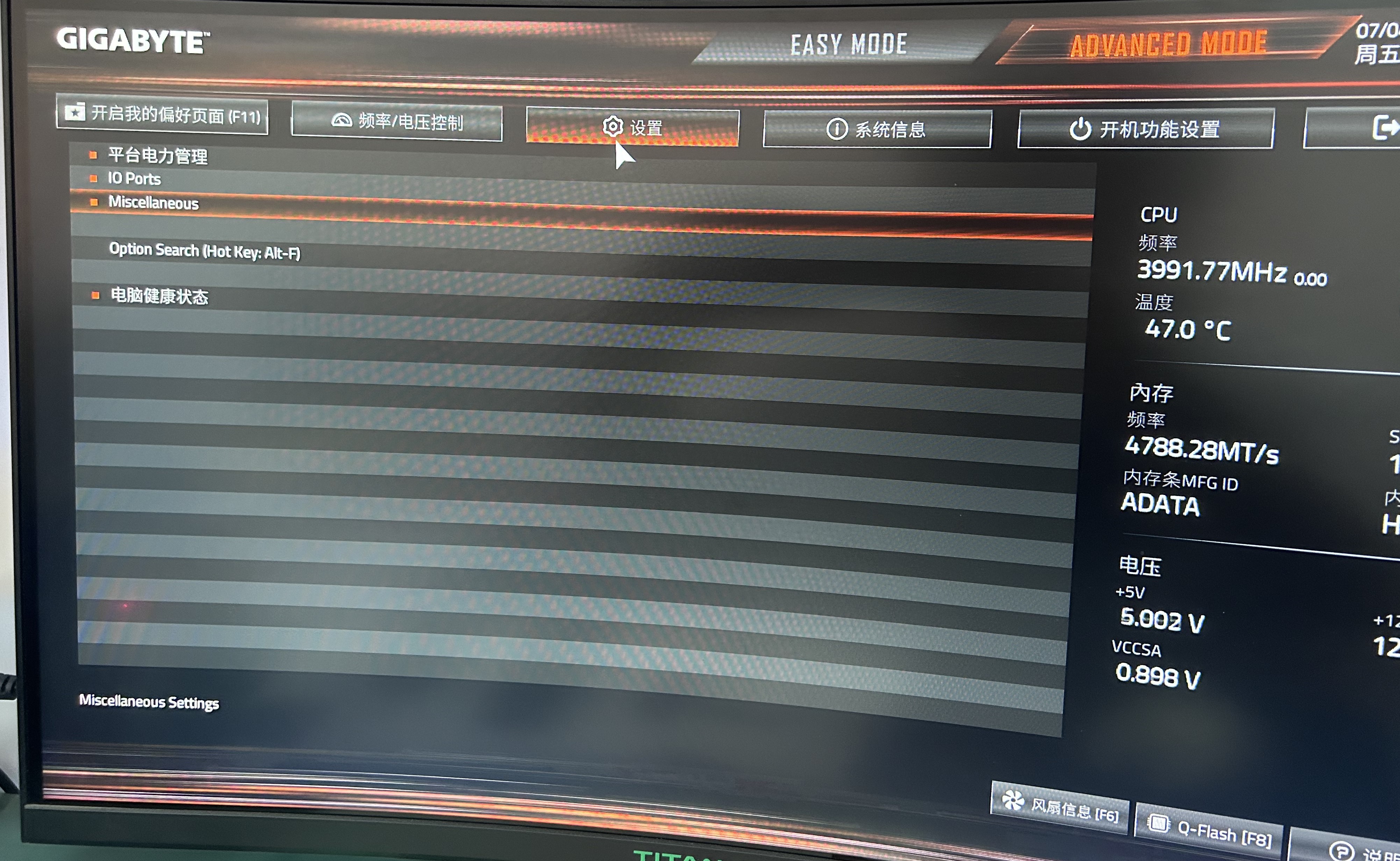 1、按电脑开机键后连续不停的按键盘DEL键进入主板BIOS,按F2进入高级设置