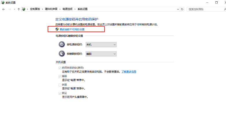在“系统设置”窗口中,点击“更改当前不可用的设置”。
