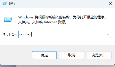 按 win+R 打开运行对话框,输入 control,然后按 Enter。