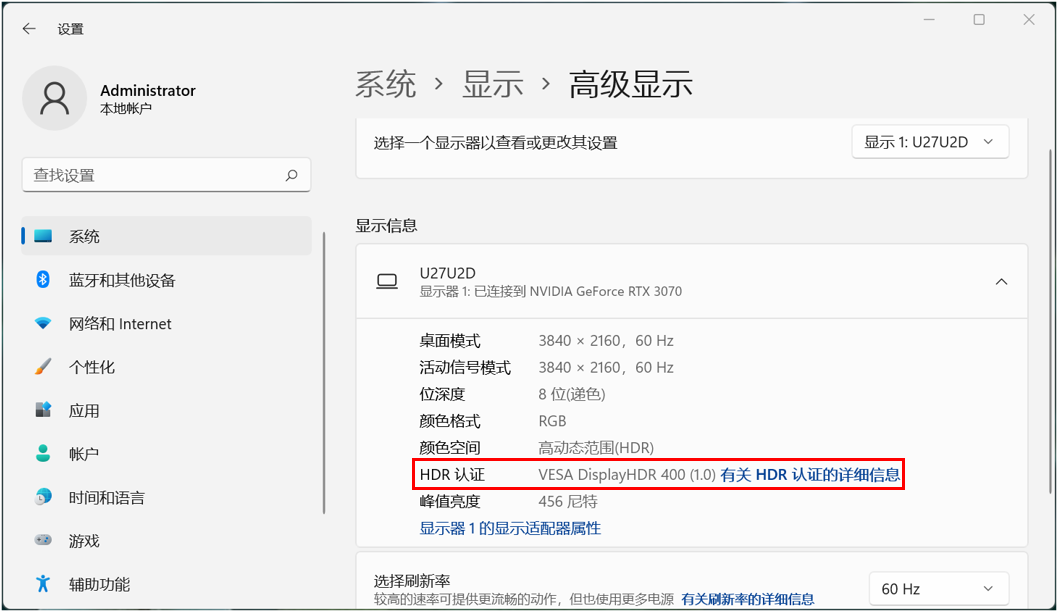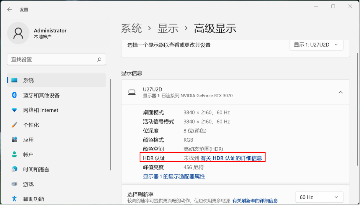 Win11系统属性提示“未找到有关 HDR 认证的相关信息”解决方案