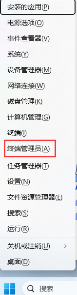 1.使用Windows徽标+X快捷键选择【终端管理员】: