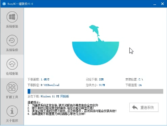 12.系统下载完成后,点击重启,会自动进行安装,等待系统安装完成,安装过程中勿操作电脑。