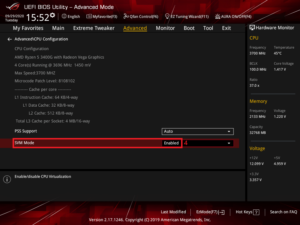 3. 点选[SVM Mode]选项并设置为[Enabled]