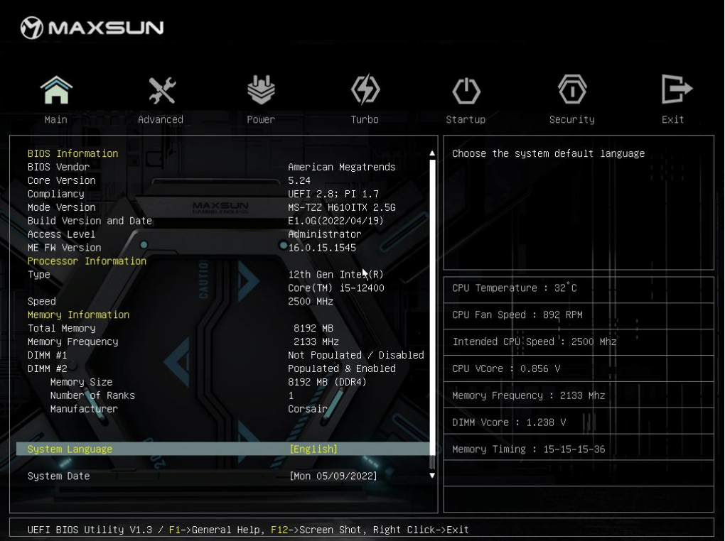 1、按电脑开机键后,连续不停的按下“ Del” 键进入 BIOS/UEFI 设置。